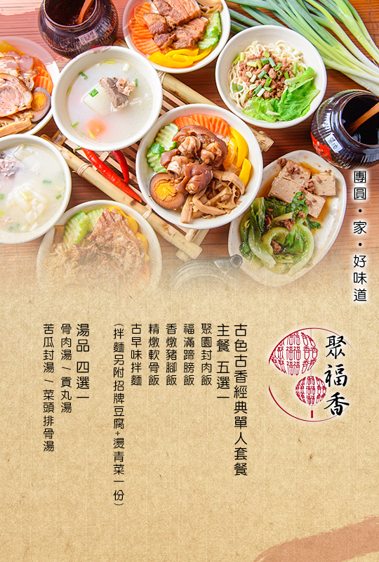 位於台南市中西區南門路63-1號,古色古香的紅磚色澤配上了紅燈籠,還有質樸古門更增添人文氣息,來到【聚福香古早味】,不只是要讓您享受傳統佳餚更是視覺與味覺的雙重享受!