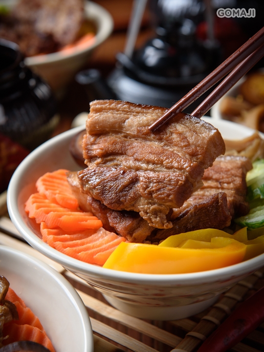 香燉豬腳飯口感Q彈細緻, 一口咬下吃進滿滿的膠原蛋白,加上慢火燉熬造就這美麗醬色, 恰到好處的鹹香美味讓人配著白飯全都掃光光!