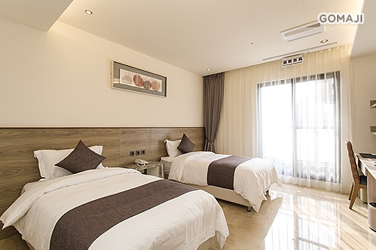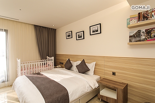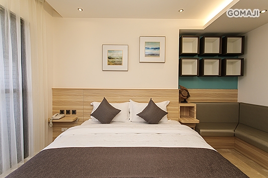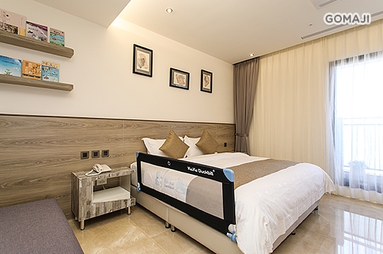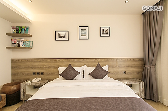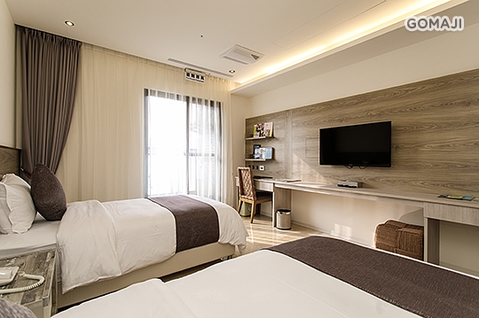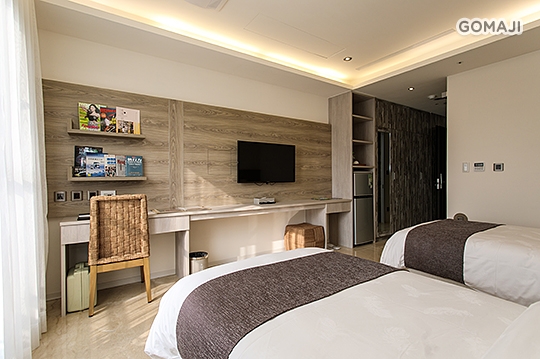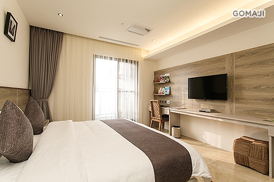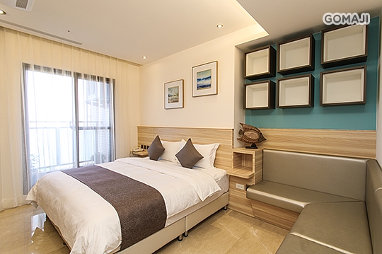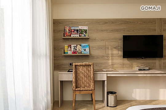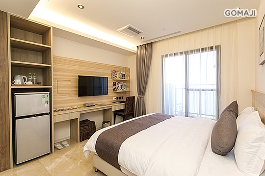 大片落地窗迎進和煦陽光,以白色與木質裝潢為主的房型營造出舒適、溫馨的氛圍,柔軟的床和枕頭讓疲憊的旅客都能一夜好眠。
