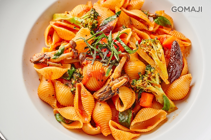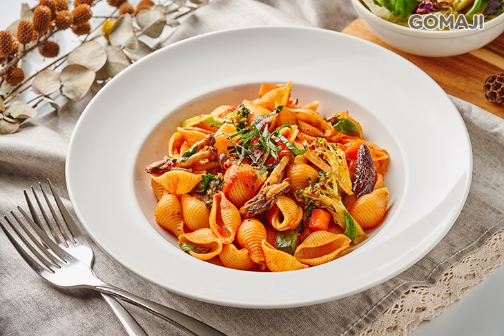 造型獨特的貝殼麵,均勻染上番茄天然的橘紅,紅澄澄上桌,噴香誘人的模樣令人胃口大開!趁熱品味,享受番茄酸酸甜甜的果香在齒唇間擴散,新鮮滋味彷彿身處在大自然孕育的番茄園中,清新風味保證讓您一吃就愛上!