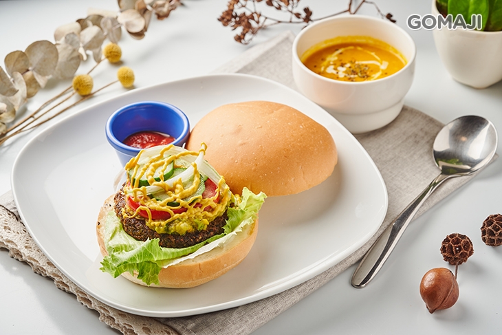 使用台灣在地有機黑豆為主特製的紮實漢堡排,搭配烤得酥香蓬鬆的漢堡麵包、各樣新鮮爽脆的生菜,無論是口感,還是口味,都完全不輸給葷食漢堡唷!大口咬下,特製漢堡排微帶酥香的滋味在味蕾綻放,不油不膩、味濃鮮美,忍不住一口接著一口!愛吃漢堡的人,現在您有更健康的新選擇了!