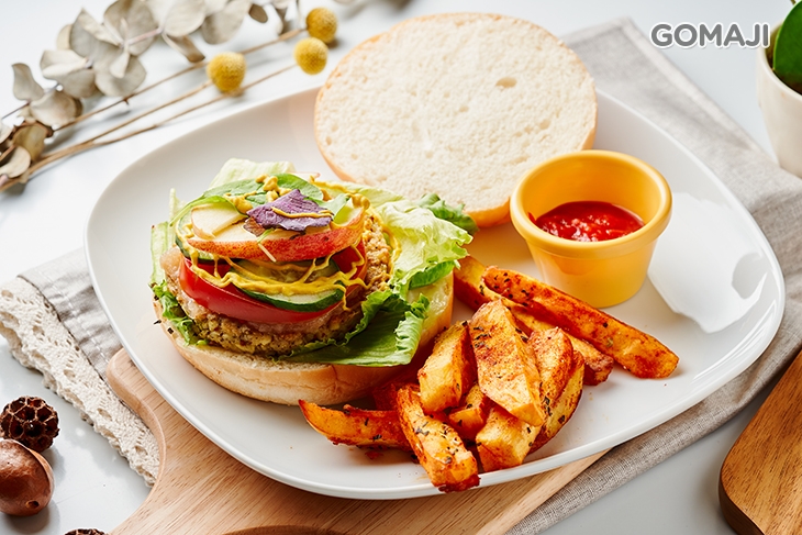 不是吃素者的朋友吃素食,其實最怕吃不飽、沒有滿足感,或者餐點沒有味道,【芽米日子 yummy vegan home 純植物飲食】挑選有機豆腐搭配新鮮馬鈴薯塊製成的和風豆腐漢堡,風雅的日式風味,溫柔征服您的味蕾~清爽不膩,卻充滿富足感的滋味,不是素食主義者的朋友也能夠輕鬆品嚐!