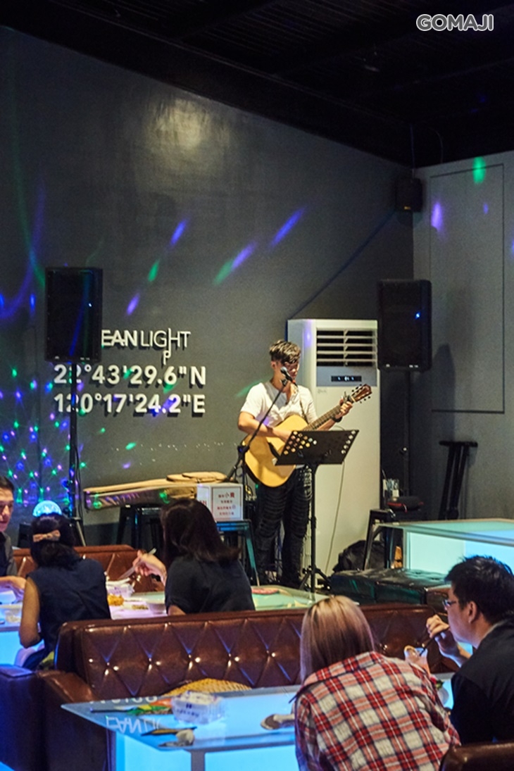 ➽ 海洋微光還特別設置了歌手駐唱的專屬舞台,不定期會有歌手駐唱,優美的歌聲搭配精緻的餐點,讓人聽得陶醉也吃得開心!