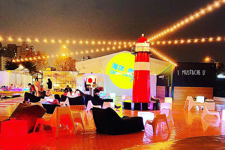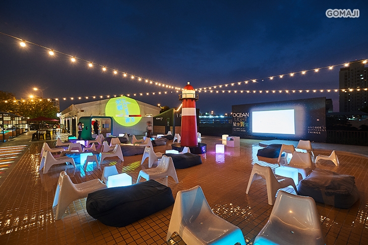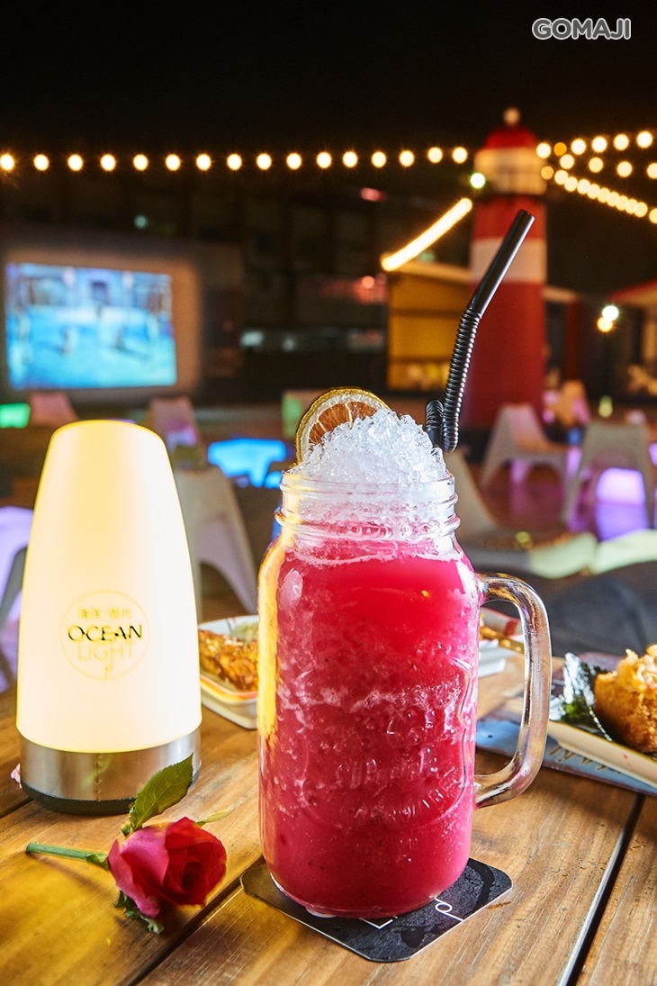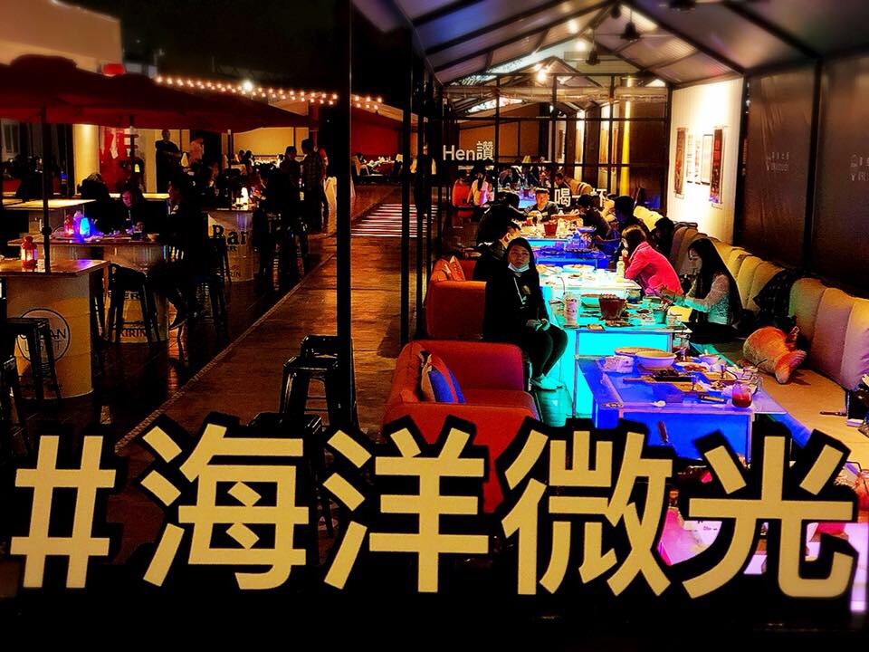 ➽ 海洋微光有分室外及室內兩種用餐環境,給人不同的用餐氛圍。室外為露天庭園式風格,其中紅白色的燈塔與放射式的燈泡象徵大海中指引船隻方向的標的,別具意義。