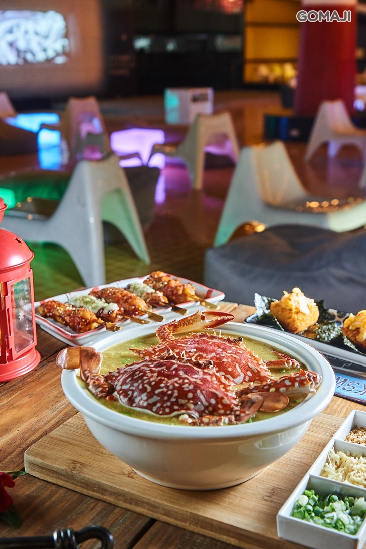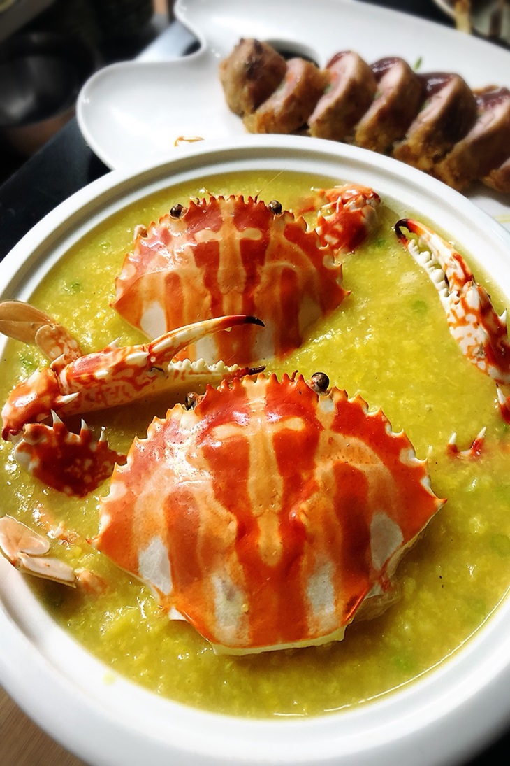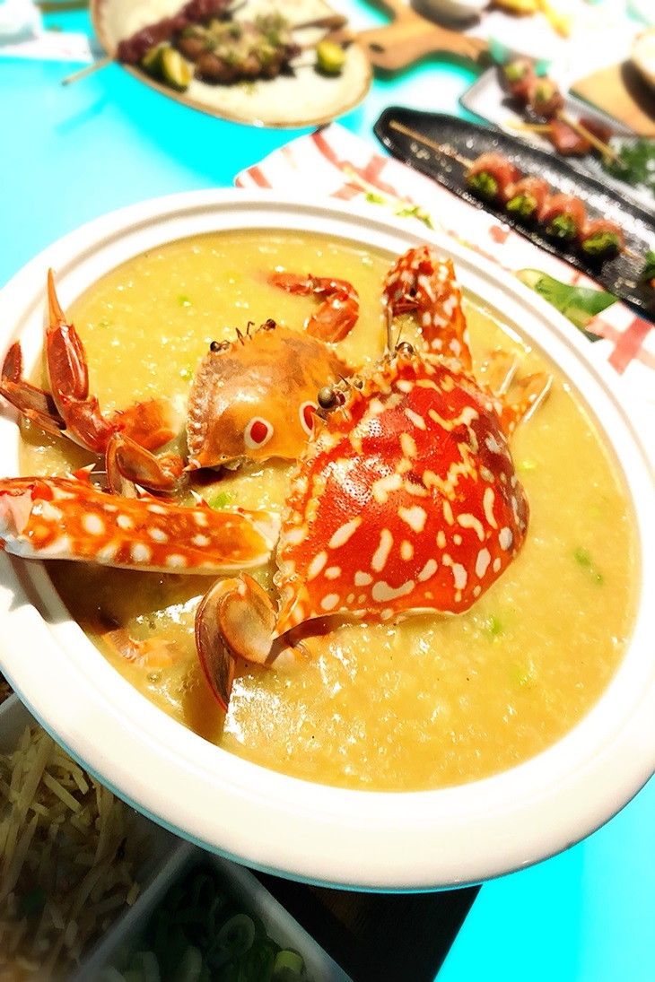 來海洋微光不能錯過的招牌螃蟹粥,湯味鮮美的螃蟹粥是選用兩隻三點蟹料理而成,鮮嫩的蟹肉、濃醇的蟹膏與米飯混合慢火熬煮成一鍋,將螃蟹的鮮味完全濃縮在這鍋粥品中,另外一旁附有蔥花、蒜頭及油蔥酥,可以依照個人喜好添加,增加粥品的香氣與口感。