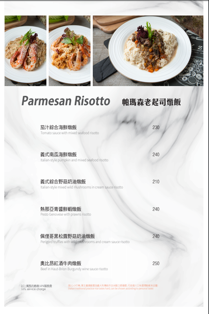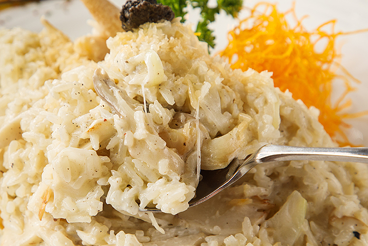 口感綿密、味道香濃的佩俚哥黑松露野菇奶油燉飯,奶油鹹香滑口、米飯軟爛入味,最後加上黑松露畫龍點睛、增味提香,無論擺盤、口感都讓人美評不斷、回味無窮。