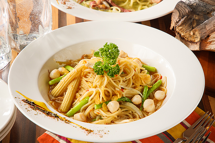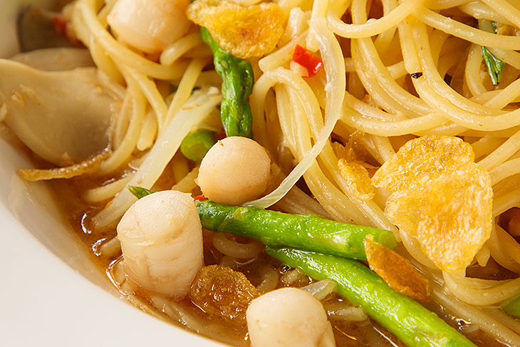 。窯主義XO蘆筍干貝麵( 辣味)。