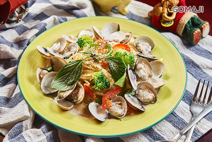 蒜香兩個字,幾乎是百搭所有義大利麵。與任何食材混搭皆無違和。盤中鮮白色的光澤,均勻飽滿,燦放著迷人馨香,絲絲入扣著心脾,一點一點溫熱你的舌尖,洋溢清新香韻。一佐白酒蛤蠣,給予味蕾有別輕柔的重節拍,細嚼慢嚥渾然天成的口感漸層。