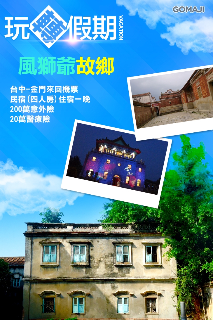 金門舊名浯洲,又有仙洲、浯江、滄浯等名。在明朝洪武二十一年(1388年),江夏侯周德興築千戶所城,以其「固若金湯,雄鎮海門」,得名「金門」。金門縣位於九龍江口外,鄰近中國大陸廈門。整座金門本島呈現金錠狀,在島嶼的四面嶼礁羅列,星羅棋布,共含大小金門、大膽、二膽等十二座島嶼,紛紛散布在蔚藍的海面中。