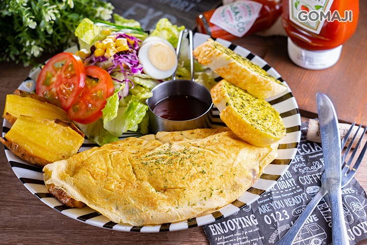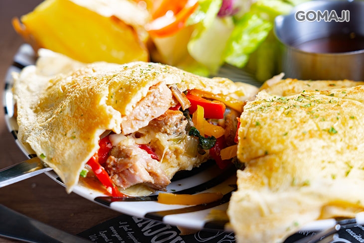 追隨美食無國界,餐點美味也無境界!這道法國蛋捲可充分展現出店家的好身手!雞蛋打散下鍋,火侯掌控得宜,待表面微焦呈金黃後,一個翻身動作,美味蛋包完成上桌!刀叉切下,蛋液緩緩流下與內餡相互交融,小口品嚐,滑嫩濃郁的滋味,讓人不得不拍手!