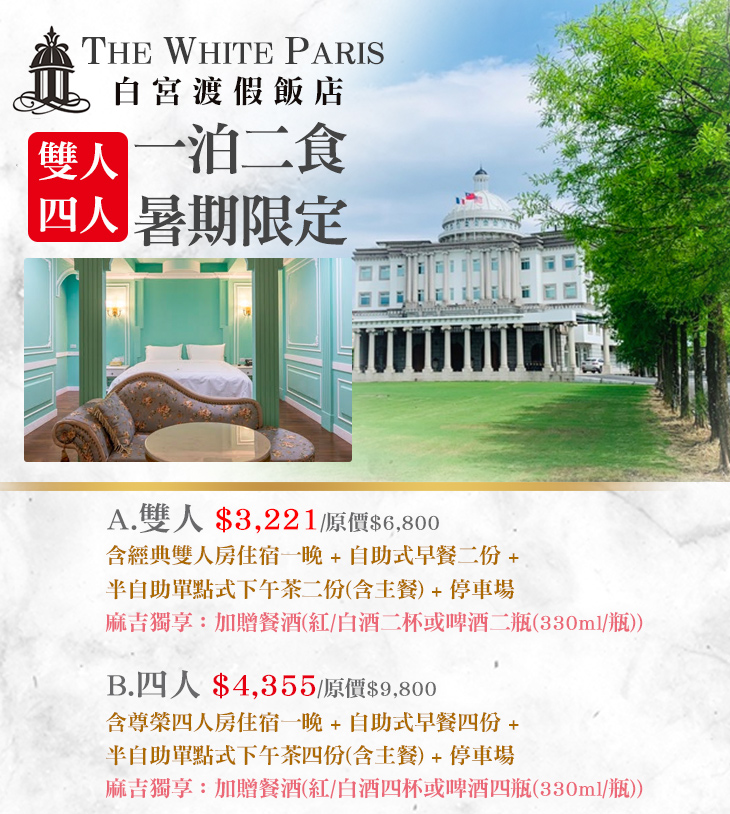 【礁溪-The White Paris白宮渡假飯店】感謝麻吉們熱烈搶購,已全數賣光光。