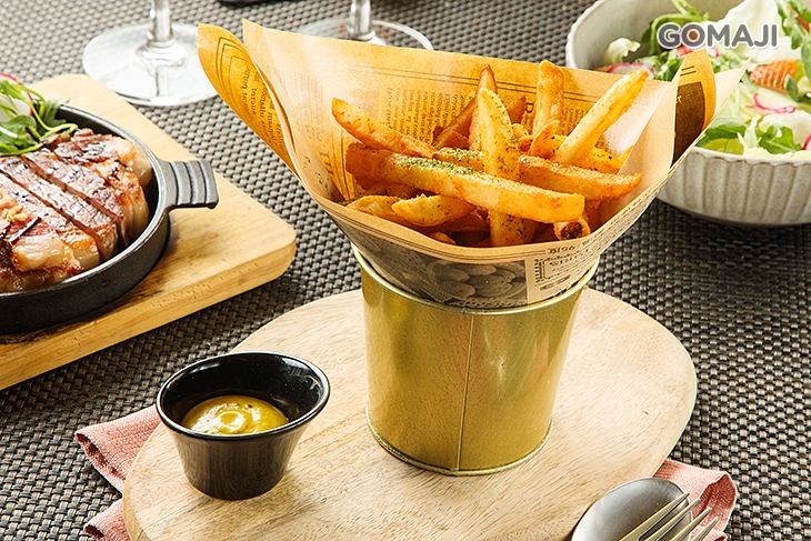 金黃酥脆的吾家薯條,剛起鍋,薯香陣陣撲鼻而來,撒上調味粉佐上黃芥末醬汁品嚐,脆口不油膩啊 ~ 雙人套餐,道道經典又美味,誰說享用美食一定要重要節日才行,人生只有一次,抓準「食」機,把握幸福時光,才是最重要的啊 ~