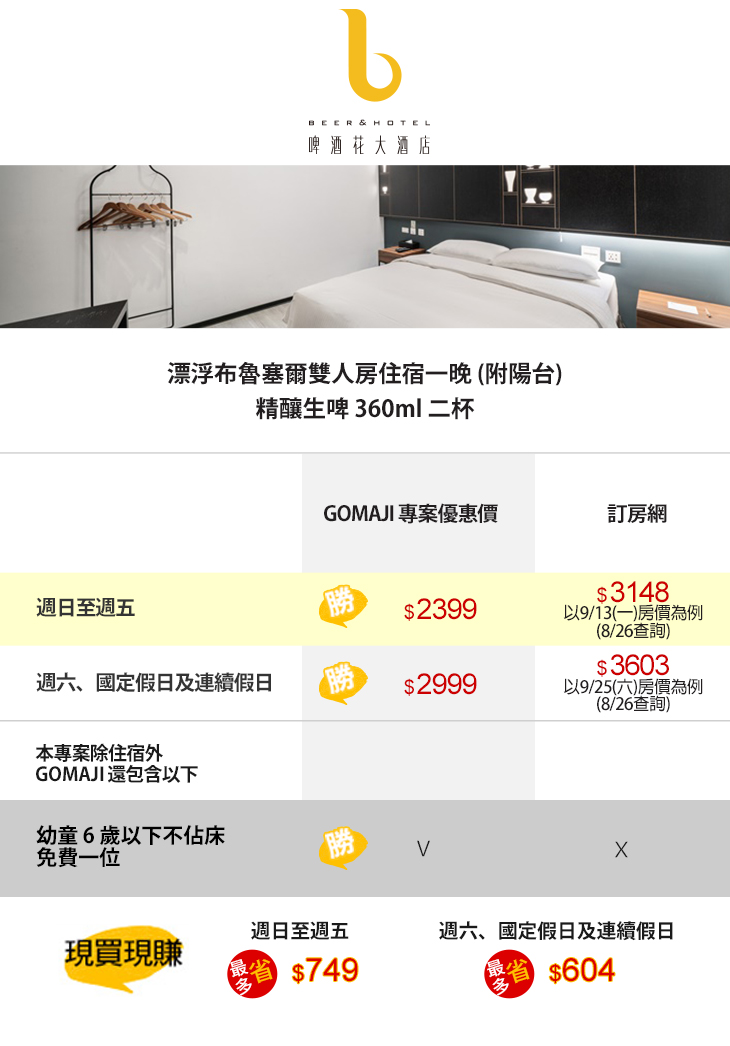 ★ 幼童 6 歲以下不佔床免費一位!