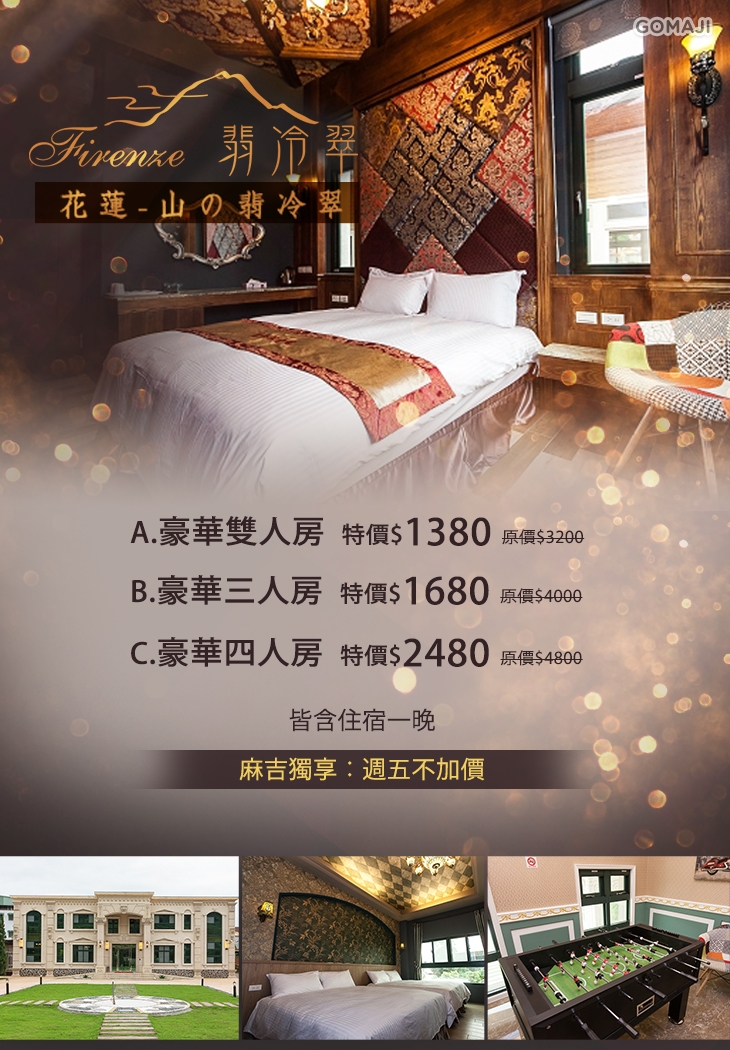 近佐倉步道!幾年前的一場家庭之旅,帶給民宿主人莫大的感動,於是決定將義大利文化給予的喜悅帶回台灣,與所有人分享!民宿裝潢以歐洲宮廷風一以貫之,結合義大利巴洛克風格的歐式莊園,從傢俱、壁畫、裝飾,都是主人用心的證明,帶給旅人們高貴不貴的渡假享受。華麗歐風與花蓮的青山白雲相襯下,散發悠然、純淨氣息,以最優質的服務,讓您擁有樂活的後山之旅!