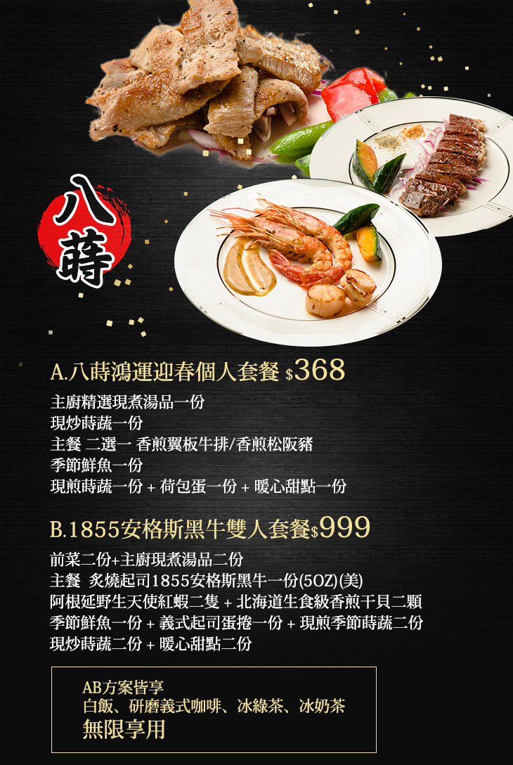 B . 1855安格斯黑牛雙人套餐