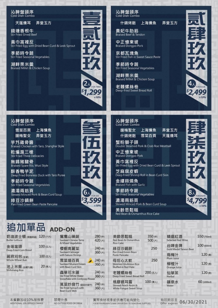 菜色內容依季節時令調整,實際品項、價目依現場提供為主