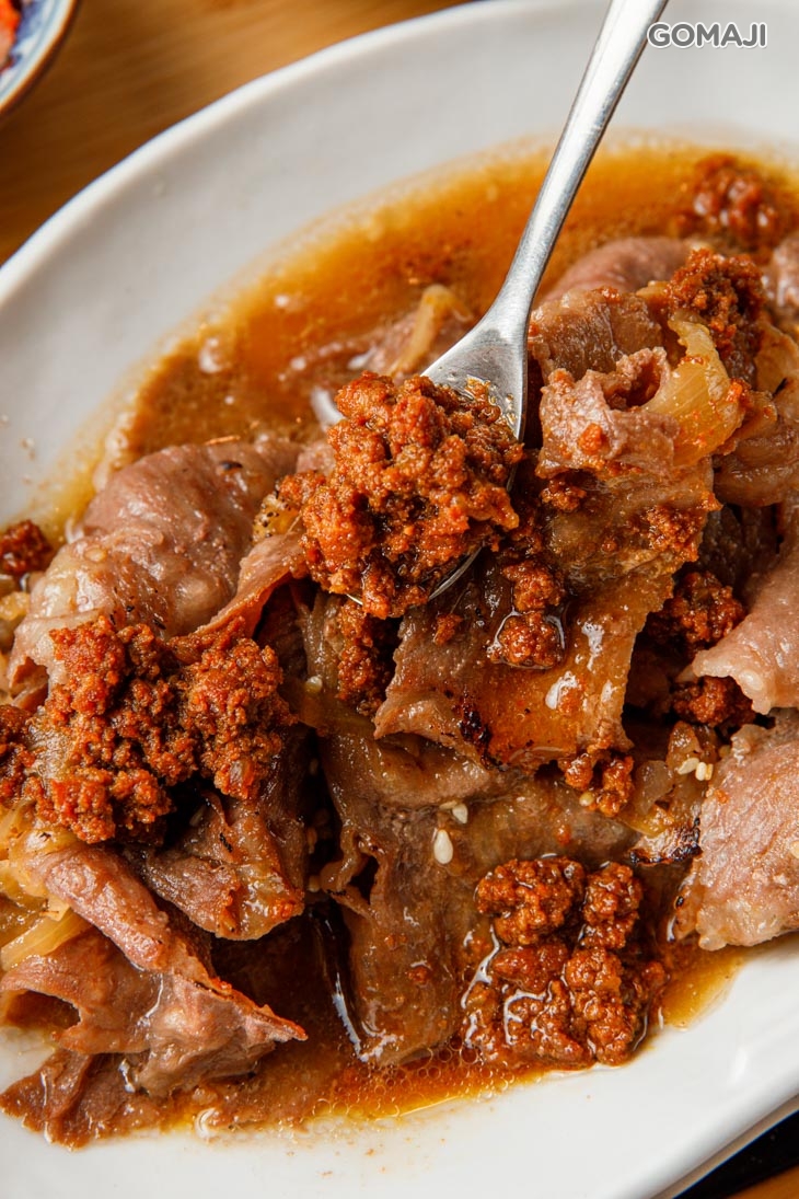 料多味美的牛肉丼,光聞香就讓人食指大動!香濃甘醇的醬汁,來自店家精心選料、費時烹煮製成,加入柔嫩紮實的牛肉片,讓整體美味與層次瞬間升級,一口牛肉片、一口香Q米飯,再一口脆甜小菜,人人吃過都讚不絕口、意猶未盡呢!