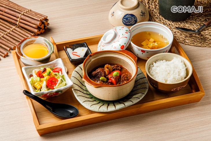 〈紅酒燉日本和牛一份(內含:柚香蘿蔔、蔬菜沙拉、湯品、泡菜、甜點)〉