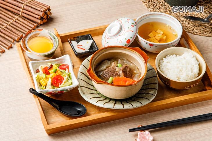 〈清燉日本和牛一份(內含:柚香蘿蔔、蔬菜沙拉、湯品、泡菜、甜點)〉