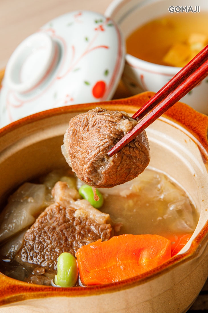 嚴選頂級日本和牛,肉質粉嫩、色澤迷人,透過簡單清燉的料理手法,將和牛本身的甜味和鮮氣提出,入口細嚐,軟嫩帶點嚼勁的口感,融合清甜湯汁,絕妙風味讓人愛不釋口!