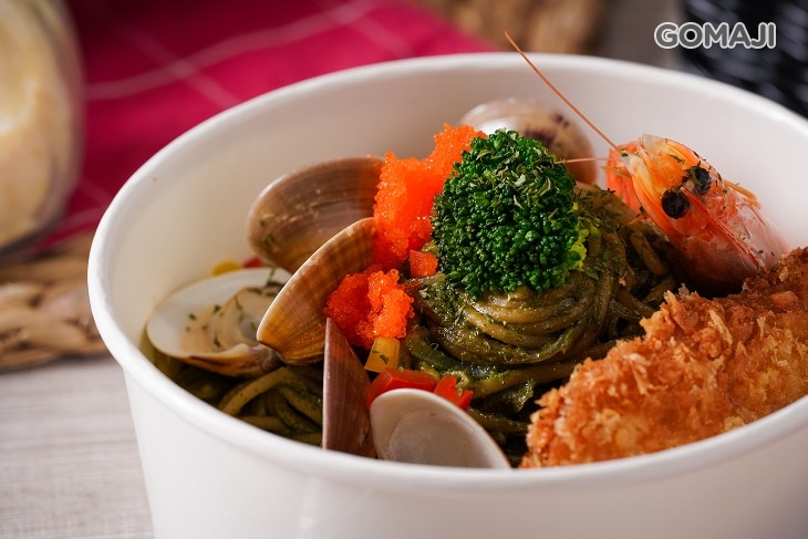 誘人香氣剛端上桌更使人飢腸轆轆,濃郁青醬與甜鮮海味在口中完美交織纏綿,給您無法言語的幸福感!