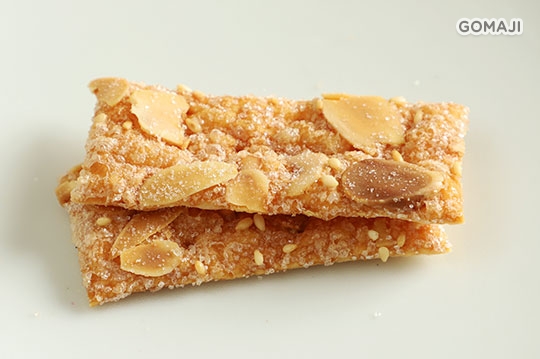 ■成分:起酥麵糰(麵粉、水、人造奶油(天然奶油、水、植物性油脂(軟質棕油、完全氫化硬質棕油)、鹽、奶粉、乳化劑(脂肪酸聚合甘油酯、脂肪酸甘油酯)、卵磷脂、天然香料、複方香料(丙二醇、香料)、抗氧化劑(維生素E、L-抗壞血酸棕櫚酸酯)、著色劑(葵花油、β-胡蘿蔔素)、鹽、調味劑(檸檬酸)))、杏仁片、糖、麵粉、蛋、白芝麻