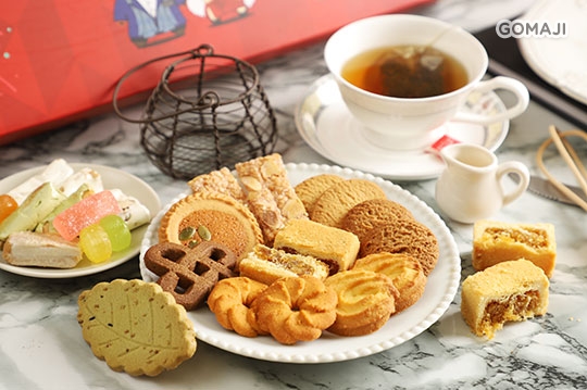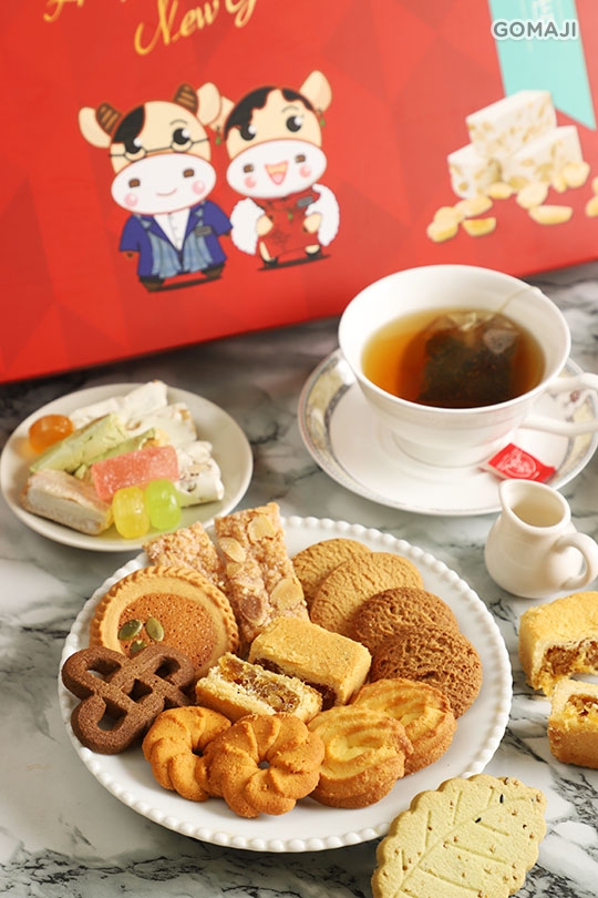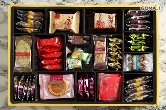 椰圈5入、元首鳳梨酥1入、土鳳梨酥1入、歐香咖啡5入、抹茶香葉3入、娃娃酥6入、草莓軟糖2入、喜訊糖3入、杏仁短條3入、一口杏仁牛軋糖6入、綠茶牛軋糖3入、錫蘭紅茶餅3入、乳酪酥5入、杏仁煎餅3入、奶油牛軋糖3入、烏龍茶包4入、芝士巧果5入