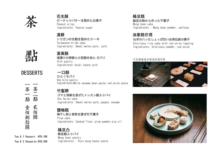 無論你怎麼看,「同安樂」表裡如一,處處有著深濃厚底的閩南氣息,同安厝的傳統格局,既不搞商業,也不譁眾取寵,單純想回到小時候的美好。回味老台北日常,原來曾經有過幸福一角,尤其午茶時候,以專業泡茶法,搭配幾塊老字號的傳統糕點,品味時光的靜好;到頭來更發現,原來,往事不一定如煙。