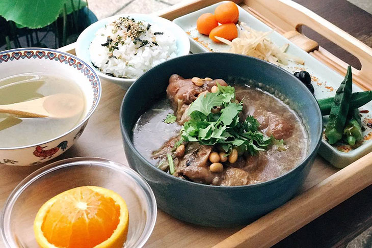 濃厚的古早情懷,帶有迷人的色澤。光是看油花滿佈的質地,就好惹人喜愛,細火慢燉的豬腳,口口骨肉分離,黃豆入料的滷汁更是自然甘口,香鹹不膩嘴,全家大小皆吃得津津有味。