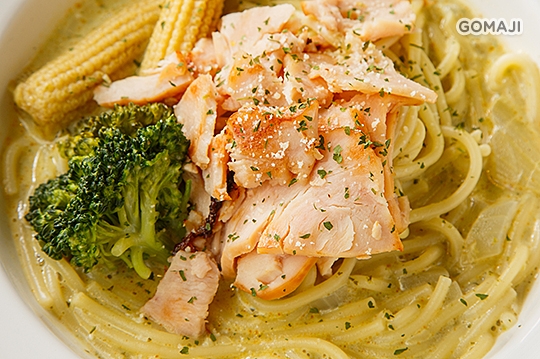 God ~ 我一直咕溜咕溜叫的,就這樣莫名跌入這片奇幻的美食漩渦。不是肚子餓到再哭鬧,是口水不由自主的吞嚥猛叫,發狂似的止不住叉子,不斷地往嘴裡送,邊吃邊讚這麵條與醬汁的精湛絕妙,滑潤香濃,配上甜脆的玉米筍,不愧為店內的招牌之一。