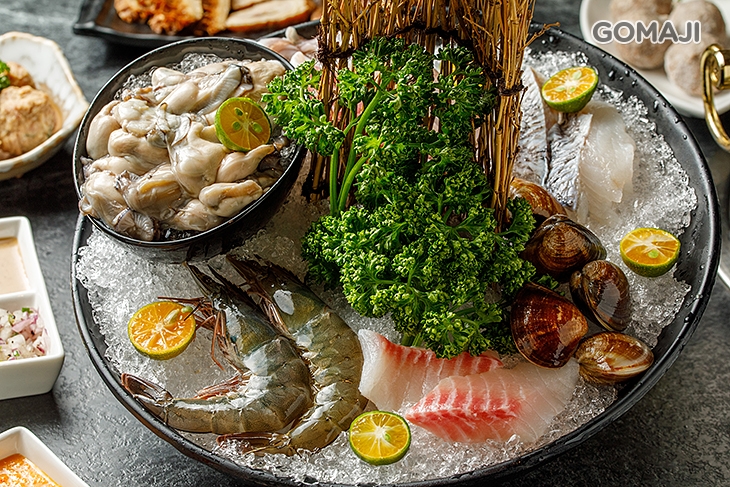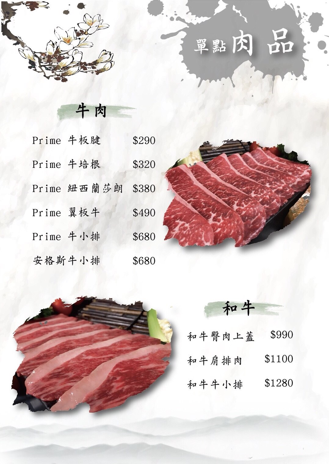 和牛牛小排、招牌手打漿、魚片組合、日本大牡蠣、海鮮拼盤、滷三寶、手工丸類