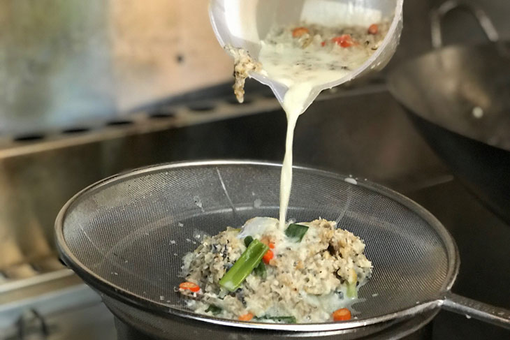 滷得入味又軟嫩的獅子頭放入湯鍋煮,吸附滿滿湯汁!咬開後湯汁就會在嘴裡散開,令人滿足!