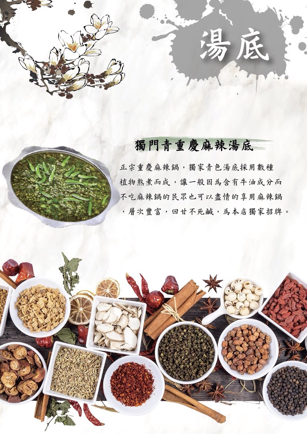 麻辣湯底由多種精選的中藥材熬製,口口香辣、滋味迷人,食材充份吸飽湯底精華,喜歡吃辣的你千萬別錯過!