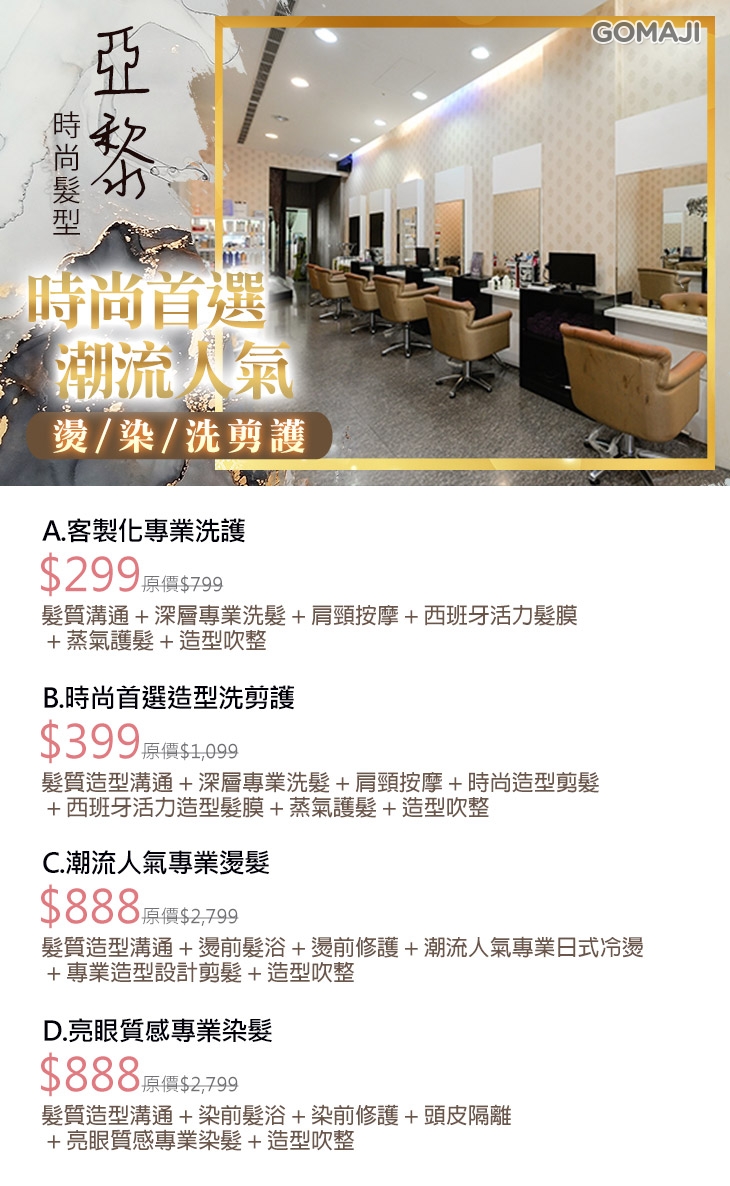 〈髮質造型溝通 + 深層專業洗髮 + 肩頸按摩 + 時尚造型剪髮 + 西班牙活力造型髮膜 + 蒸氣護髮 + 造型吹整〉