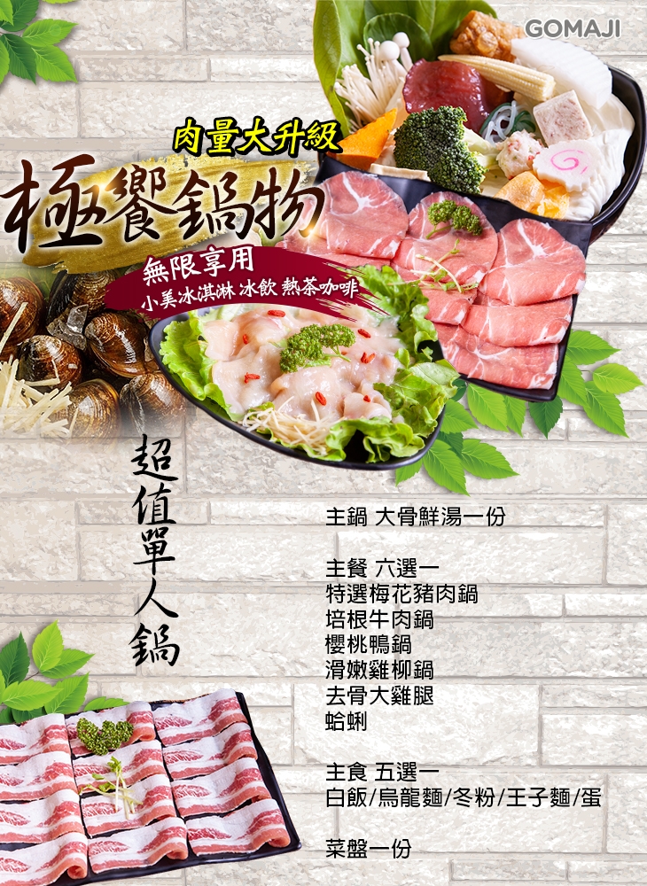 ★ 各種肉及海鮮豐富選!超值單人鍋! ★