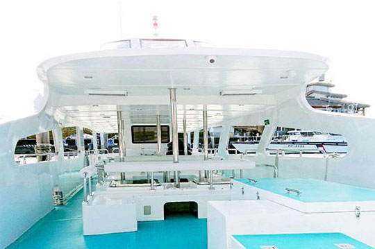 ▼豪華的遊艇船身,搭乘海底玻璃船,讓您輕鬆探尋墾丁海域裡的生態景觀,也可在甲板上吹著清涼海風,欣賞海上落日美景!