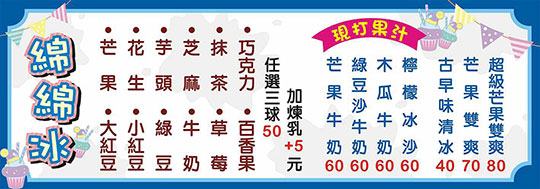 透過新鮮程序製作的綿綿冰,吃起來更加美味動人!綿滑細緻的口感,在唇齒間綻放樸實的好味道!淡淡的甜味在口中化開,香氣十分濃郁!沁涼的絕佳感受除去內心的煩躁,吃著吃著嘴角不自覺上揚,幸福無需四處尋覓,此刻幸福就在綿綿冰裡頭,每嚐一口、甜在心頭!