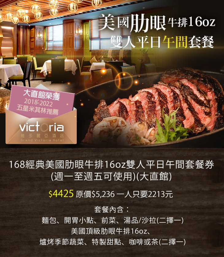 【維多麗亞酒店-N°168 PRIME牛排館】感謝麻吉們熱烈搶購,已全數賣光光。