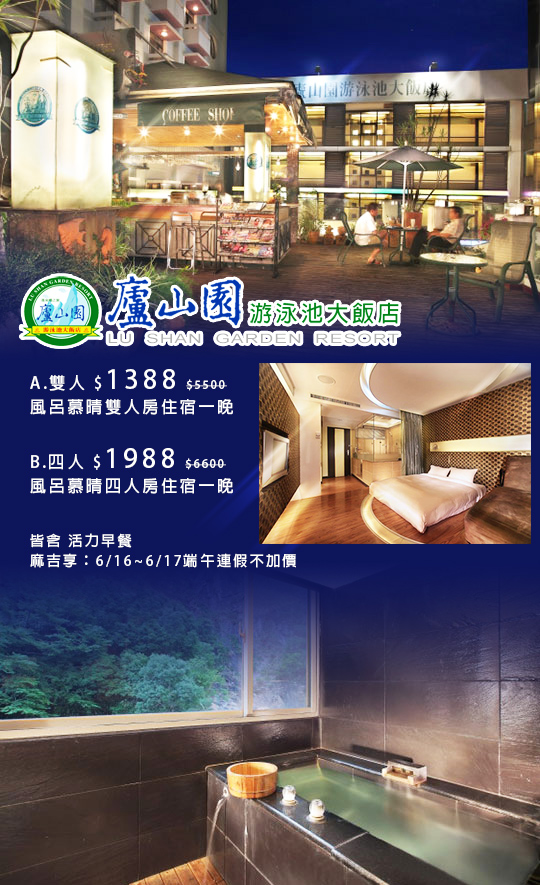【南投-廬山園游泳池風呂館】感謝麻吉們熱烈搶購,已全數賣光光。