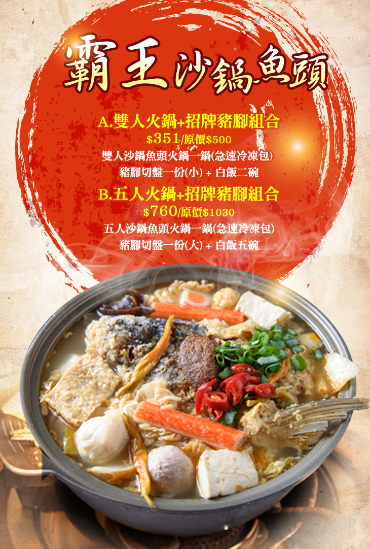 ※圖片僅供參考,方案內之沙鍋魚頭火鍋為急速冷凍包。