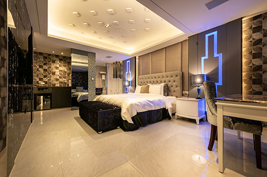 水晶吊燈搭配不同顏色的燈光點綴,在寬敞空間中釋放出浪漫的奢華魅力,高級名床與各種設備,更添旅途的舒適度與便利性!