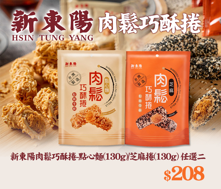 〈新東陽肉鬆巧酥捲-點心麵(130g)/芝麻捲(130g) 任選二〉