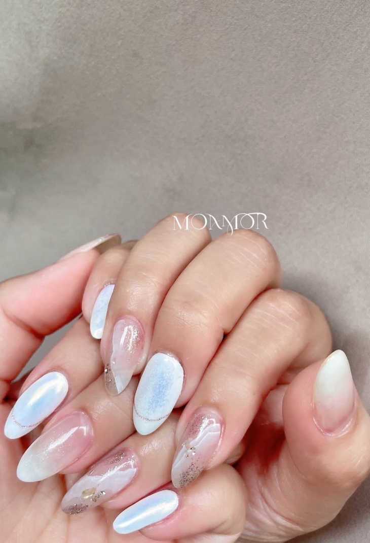 〈清潔消毒 + 指甲修型 + 推整指緣 + 甘皮修整 + 霧化甲面 + 凝膠底層 + 手部凝膠上⾊任選:單⾊/跳雙⾊/貓眼/亮粉 + 凝膠指甲封層 + 指緣保濕修護〉