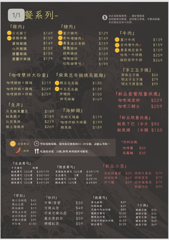 營業時間:週一至週日 11:30~14:30 17:00~21:00 每月農曆初一、十五公休,其他不定時公休依FB粉絲團公告為主