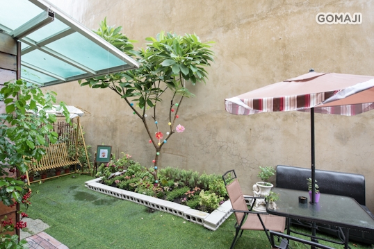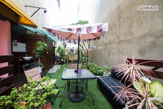 除了精緻的室內空間,走出戶外還有一片可愛的小天地。用心栽種的小花圃、舒適的露天座椅,非常適合和三五好友在此聚餐談心。