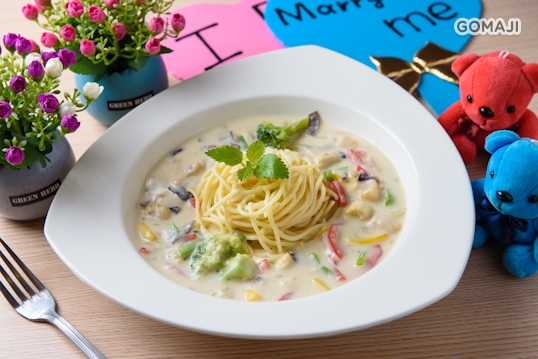 老闆用心準備各式時蔬,搭配香濃白醬融入麵條裡面,是美味和營養兼具的一道料理,大人小孩都很適合喔!來為你一天所需的纖維加把勁吧!