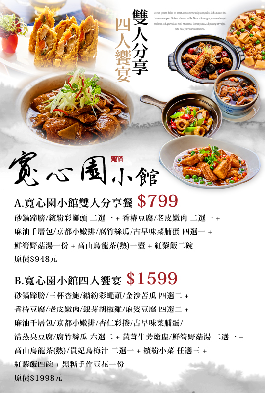 A.寬心園小館雙人分享餐