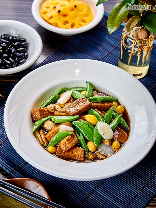 嚴選由非基改大豆製成、採豆渣汁初次成漿風化形成的香嫩豆包,帶有香濃大豆香氣,口感綿嫩細緻,以中藥及麻油紅燒入味,吃來元氣滿滿、溫潤補氣。