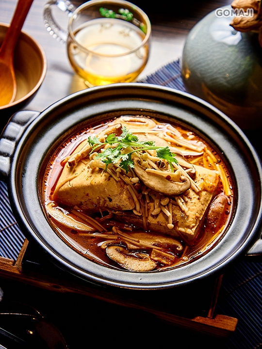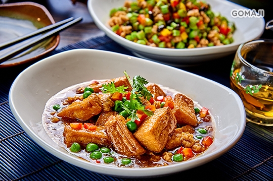 嚴選非基改黃豆製成的嫩豆腐,搭配味辛帶麻的花椒油及傳統風味辣豆瓣醬,創造出一道麻辣鮮香的麻婆豆腐,也是一道知名四川料理。