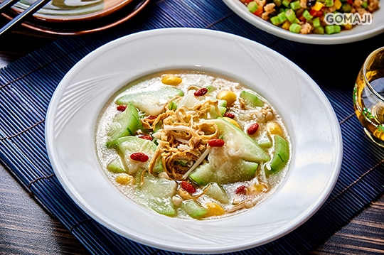 腐竹是豆漿結皮之後將豆皮挑出來一束一束地晾乾製成,有著濃郁的豆香味及豐富營養,主廚嚴選細緻絲瓜、蕈菇與腐竹一起烹煮,風味爽脆又清甜,一定要試試看!